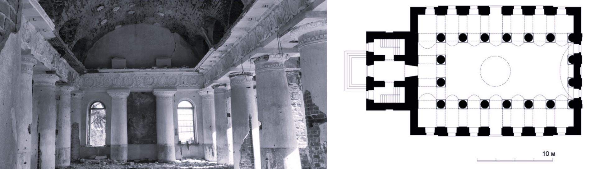 Fig. 2. Interior and plan of the Znamenskaya church of the Znamenskoye village, 1842