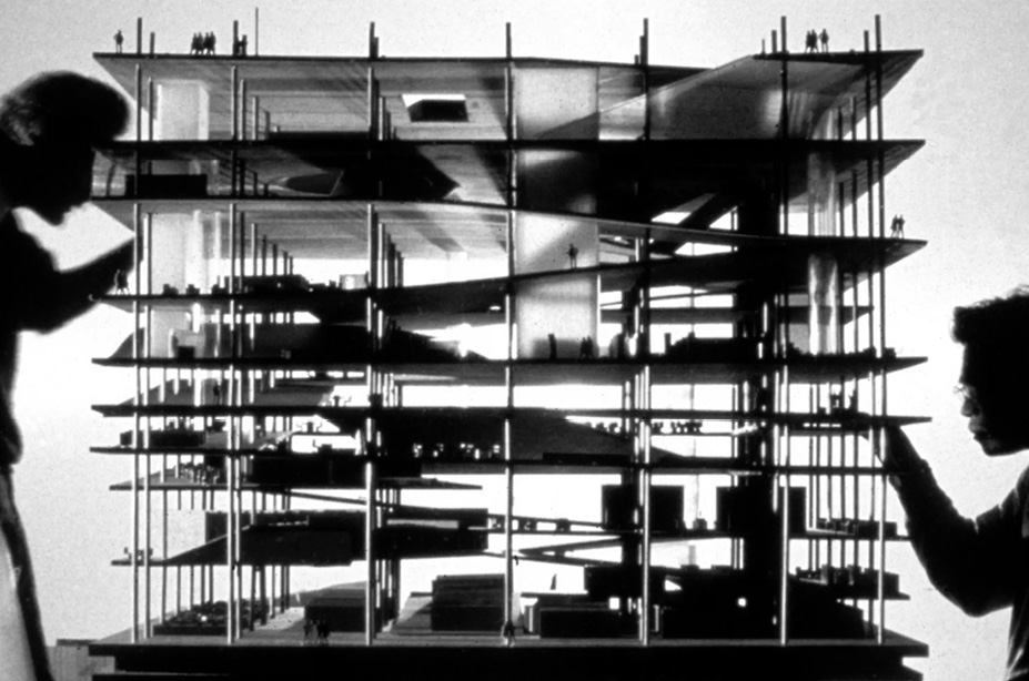 В его первых архитектурных работах «Берлинская стена» и «Эксодус», выполненных в школе АА, и критический взгляд, и сценарный подход полностью нашли свое воплощение. Сам выбор Берлинской стены в качестве объекта архитектурного исследования демонстрировал фокус Колхаса на реальных условиях современного урбанизма. Стена как кинопленка была создана из различных эпизодов, разнообразие которых было обусловлено изменяющимся городским контекстом. Дипломный проект «Эксодус или добровольные узники архитектуры» показал умение Колхаса создавать многослойные аллюзии: в полосе угадывался образ супермонумента Суперстудио, полоса расселения в Магнитогорске Ивана Леонидова, Берлинская стена [4]. Все эпизоды полосы «хорошего города», проходящей через центр Лондона, были обращены к архитектурным архетипам, переосмысленным с помощью концептуального сценария на основе известных прототипов. По сути, Колхас препарировал реальность, урбанистическую и архитектурную, и заново собирал ее фрагменты, монтируя узнаваемую иконическую структуру. Этот прием – сборка на основе деконструкции, позволяющий создавать новое целое, укорененное к обстоятельствам реальности, будет повторяться на протяжении всей карьеры Колхаса. Концепция же и есть инструмент сборки или монтажа, термина, который Колхас, несомненно, извлекает из своего кинематографического опыта.