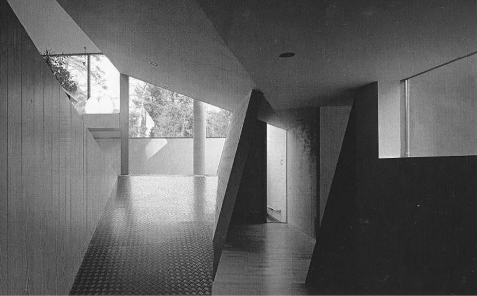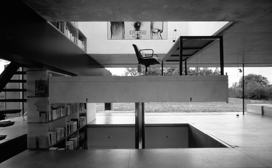 Так лифт, мигрируя из небоскреба как средство организации непрерывного пространства, превращается здесь в самодостаточную пространственную единицу. Три различных уровня представлены тремя слоями. Так же как в небоскребе интерьеры этажей не связаны между собой, так и этажи дома имеют разную функцию и архитектуру. Контраст среднего уровня, представленного стеклянным объемом, устраняющим барьеры между интерьером и экстерьером, с закрытым уровнем спален, в котором только круглые проемы ловят солнечные лучи, заставляет вспомнить о парящих плоскостях супрематизма Хидекеля. При этом нижний уровень, в котором находятся кухня и служебные помещения, выглядит как дадаистский рисунок. Невероятная плотность разнообразных перспектив, сконцентрированных в небольшом объеме, превращает жилой дом в кинофабрику впечатлений. Вертикальный променад здесь представляет собой и ответ Ле Корбюзье, и одновременно прославляет вертикальный разрез как главную концептуальную диаграмму.