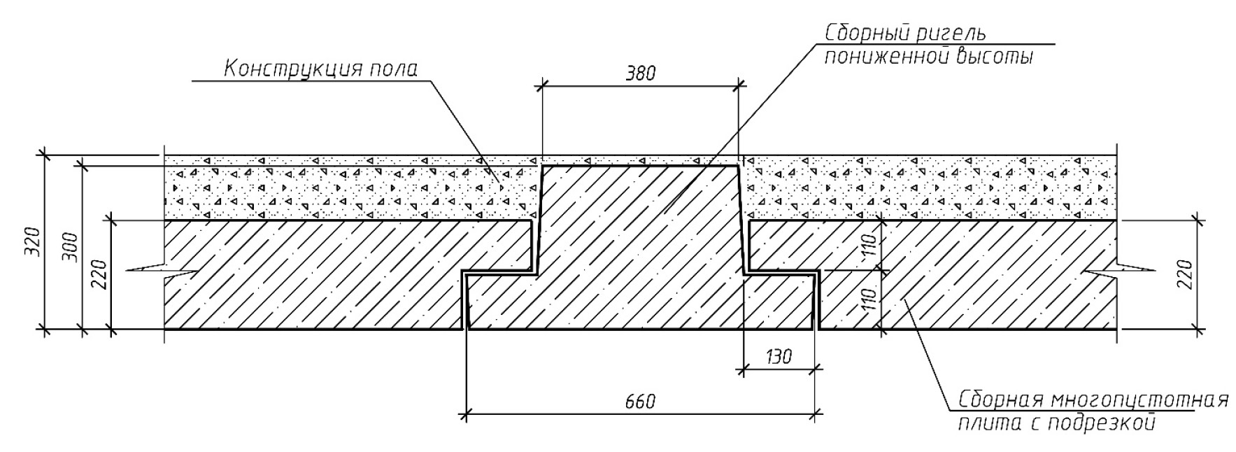 Рис. 1. Узел сопряжения плит перекрытия с ригелем