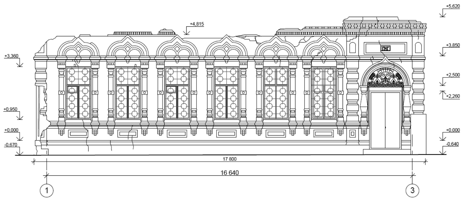 Fig. 1. Measurement drawing of the main facade of letter A on the street. Ulyanovsk