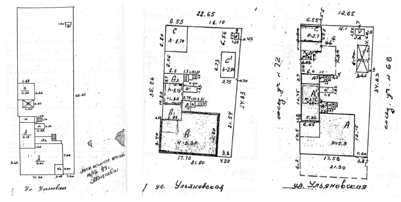 Рис. 3 Схема развития домовладения по годам: 1949, 1969, 1994