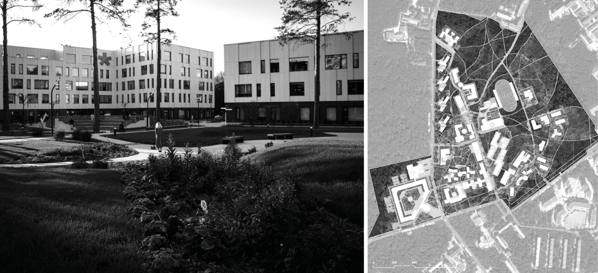 Fig. 3. Novosibirsk State University. Master plan developed by Strelka Design Bureau. (Localized type of placement)