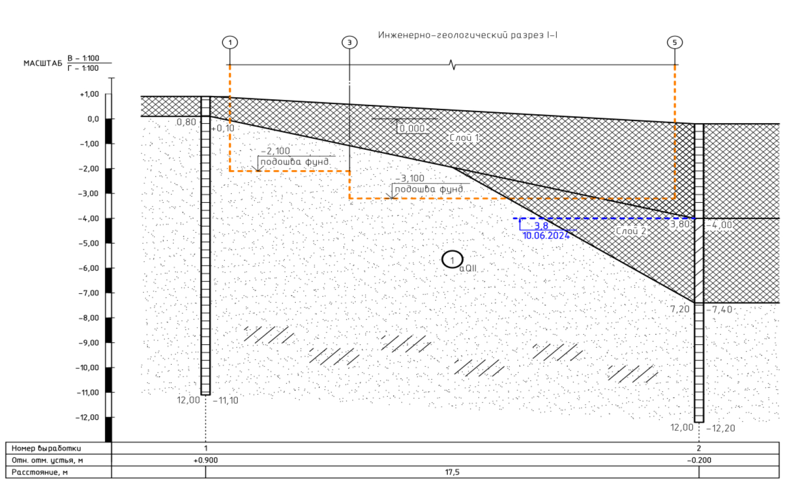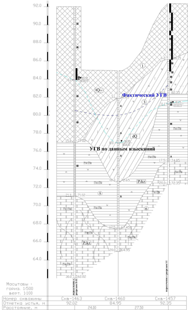 Fig. 13. Engineering and geological section of the soil base of the building, located at: Samara, st. Stepan Razin, 87