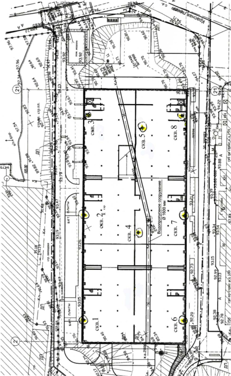 При анализе плана г. Куйбышева с указанием местоположения засыпанных оврагов на территории города (на основании планов старых съемок) (см. рис. 10) было установлено, что часть здания была возведена на месте засыпанного оврага и основанием для этой части здания является насыпной грунт мягко/текучепластичной консистенции, представленный чередующимися слоями суглинка и навоза. Характер образования и распространения трещин в несущих стенах здания свидетельствует о незатухающих неравномерных осадках. Фундамент здания и грунт основания здесь находятся в аварийном состоянии.