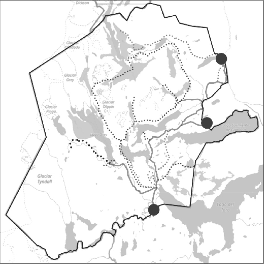 Рис. 5. Схема ландшафтно-планировочной организации парка Торрсе-дель-Пайне, Чили [23]