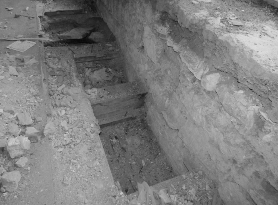 Вскрытие перекрытий первого этажа выявило деревянные балки, установленные с шагом 800 мм (рис. 3). Остаточная несущая способность балок достаточна для безопасной эксплуатации. Прогибы потолков в помещениях первого этажа ‒ в пределах значений, допускаемых современными нормами. Отклонения полов помещений второго этажа от горизонтальной плоскости ‒ в пределах значений, допускаемых современными нормами.