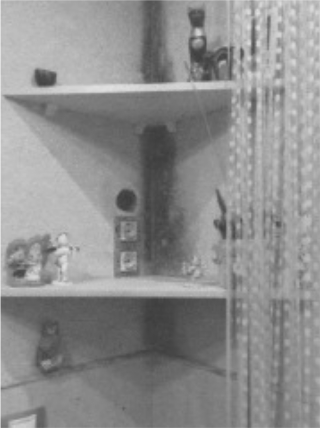 Fig. 2. Crumbling on the ceiling and dark spots on the outer wall in the bathroom of an apartment in the Soviet district