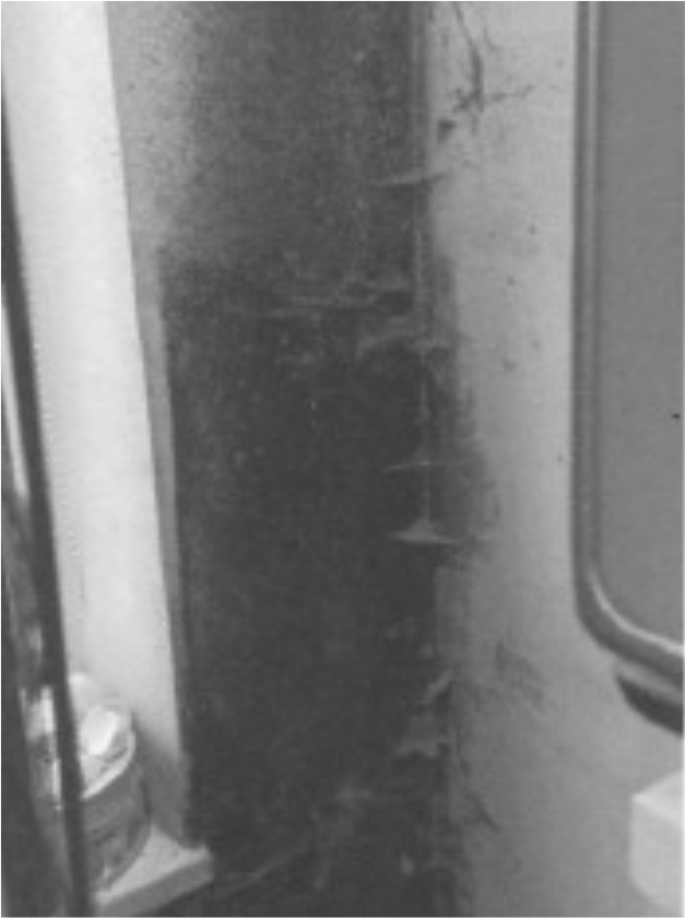 Обследование поврежденных материалов проводилось измерением pH в зоне повреждения и на неповрежденных участках бумажными индикаторами.