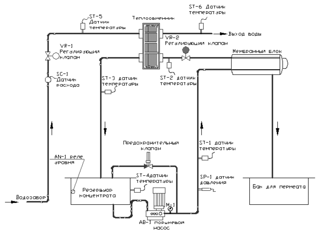 Рис. 2. Технологическая схема процесса работы обратноосмотической установки