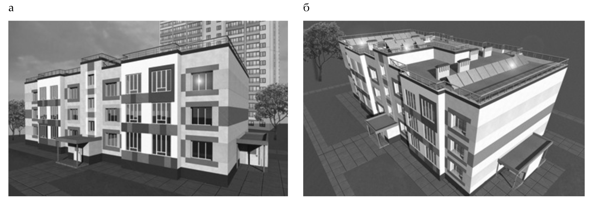 3. Рис. 2. Энергоэффективный дом. Визуализация: а – вид 1; б – вид 2