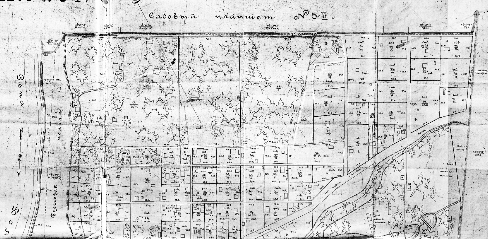Fig. 3. The plan of the boundaries of the plots on the territory of the Out of town Park for 1930 (Central State Archive of the Samara region, F. R-56, Op. 1, 338. L. 30)