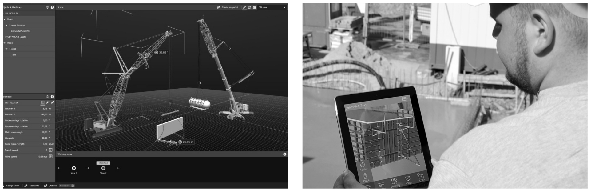 Crane Planner software from Liebherr, which is based on virtual reality technologies. The program allows you to reproduce the process of lifting the load. The algorithm contains the parameters of all Liebherr cranes: the program automatically calculates the ground pressure and the position of the center of gravity.