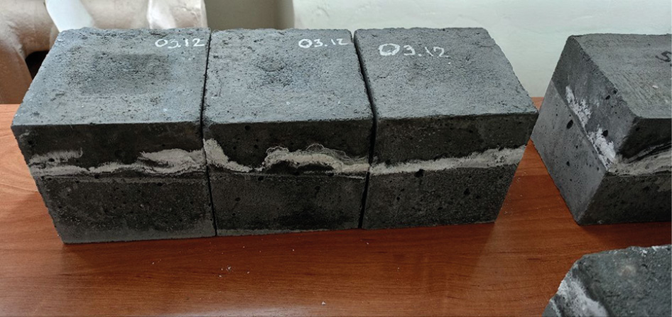 Образцы были задействованы в испытаниях по определению класса бетона по прочности при сжатии по ГОСТ 10180-2012, на морозостойкость по ГОСТ 100602012, на водопроницаемость по ГОСТ 12730.5-2018. Проводилось испытание на влияние дополнительной выдержки в щелочной среде.