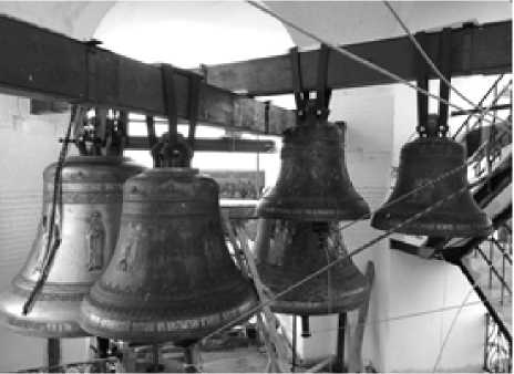 - конструктивные особенности несущей рамы, на которую подвешиваются колокола, и ее элементов;