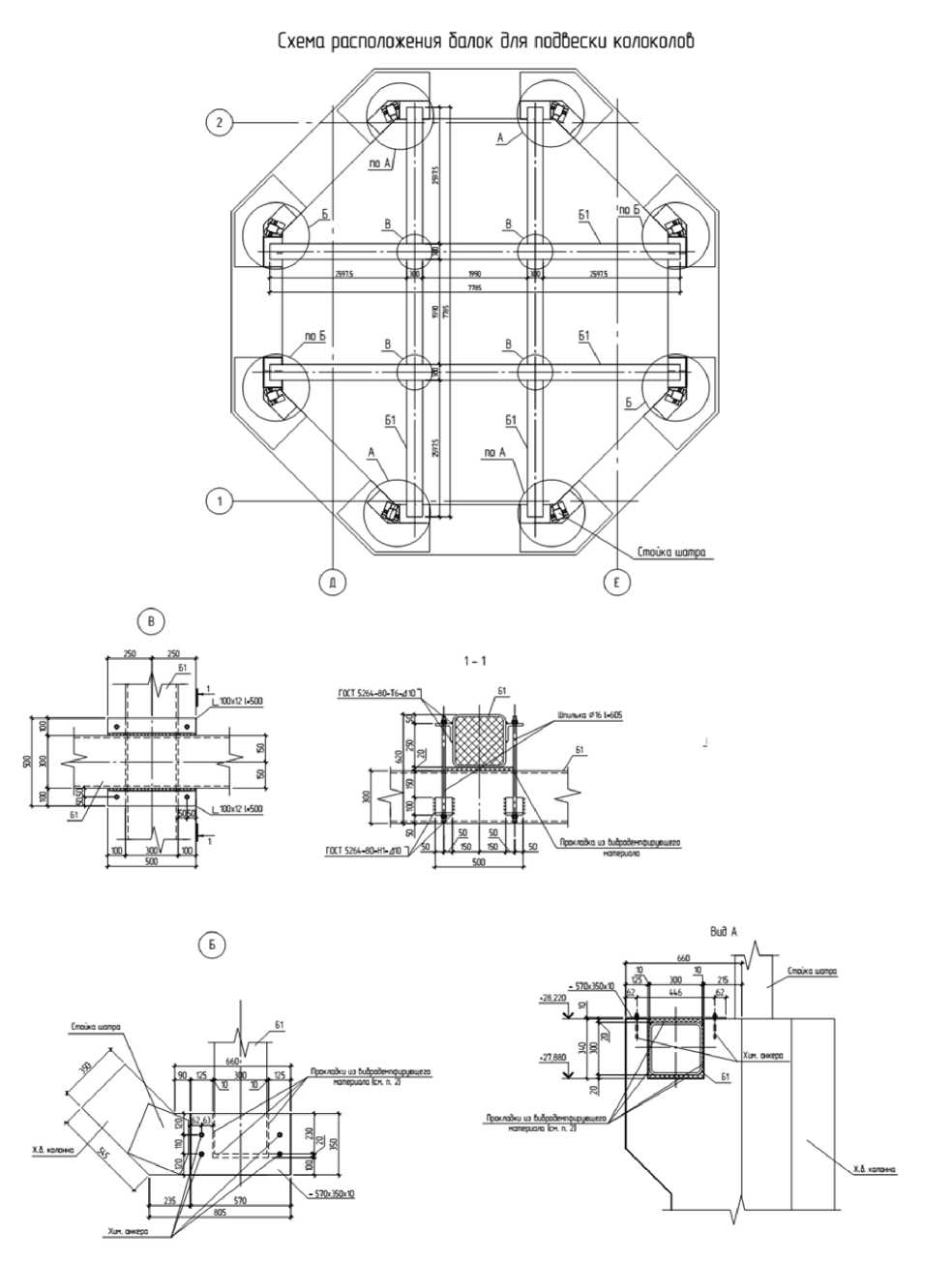 - выбор крепежных конструкций для подвески колоколов и варианта обшивки балки перед подвеской колокола.
