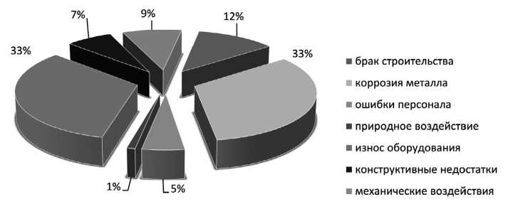 Причин, по которым может произойти авария, множество. Для наиболее эффективного решения и разработки мероприятий по их предотвращению целесообразно все причины классифицировать. На основании анализа данных об аварийных ситуациях [1‒9] все чрезвычайные ситуации можно объединить в следующие группы: