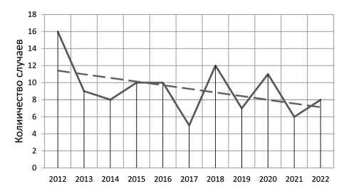 Рис. 5. Динамика возникновения аварийных ситуаций на магистральных газопроводах