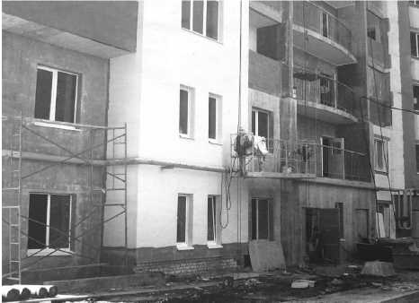 Рис. 3. Выполнение работ по технологии «мокрый фасад» на строительном объекте