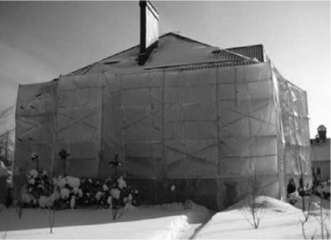 Рис. 4. Устройство «тепляка» на фасаде здания в зимний период