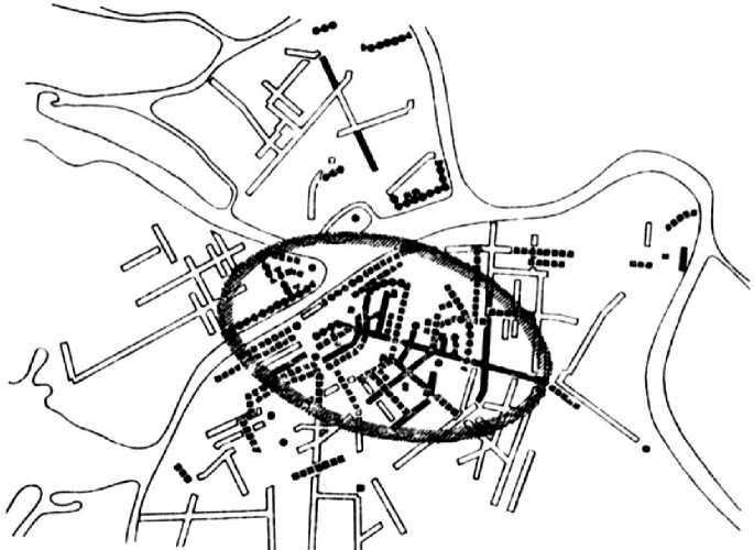 Рис. 2. Схема важнейших улиц центра (заключены в овал)