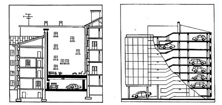Рис. 4. Примеры реконструкции первых этажей и устройства парковок