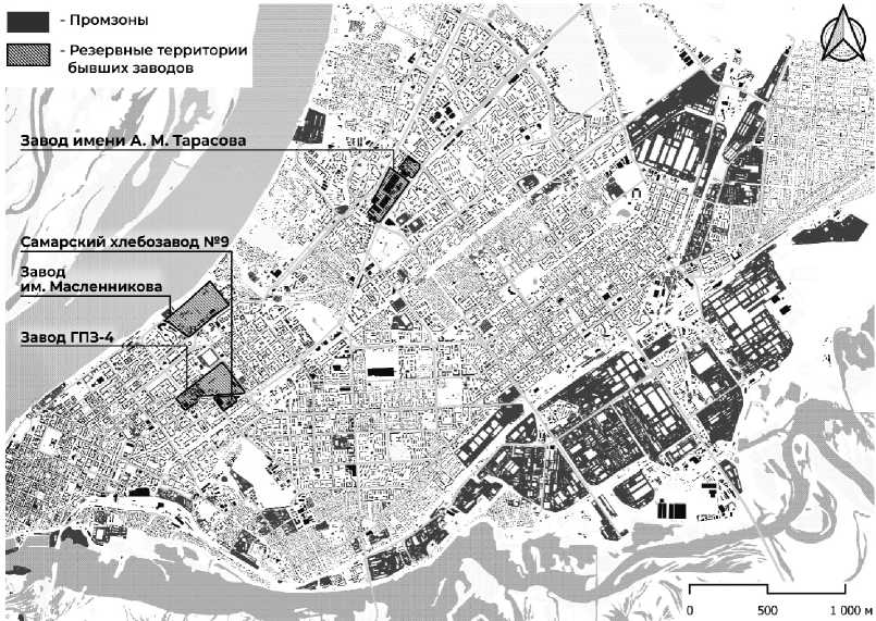 Самара (Куйбышев) пережила значительный рост и изменения в своей застройке после Великой Отечественной войны. Данный период характеризуется активным восстановлением разрушенных городов и строительством новых объектов в рамках программы послевоенного восстановления страны. Этот процесс также был направлен на создание нового архитектурного облика города, соответствующего духу времени. В послевоенные годы город стал крупнейшим промышленным и культурным центром СССР. Здесь был создан мощный потенциал авиакосмической, машиностроительной, металлургической, электротехнической, кабельной, нефтеперерабатывающей и легкой промышленности [3]. В 1950–1970-е гг. в Куйбышеве были сооружены Волжская гидроэлектростанция, Волжский автомобильный завод, судоверфь, долотный завод, завод металлоконструкций (рис. 1) [4].