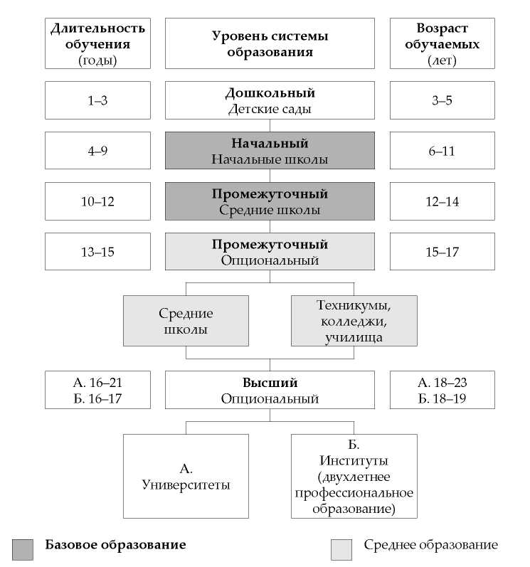 Ступень обучения | Годы обучения | Классификация видов школ | ||