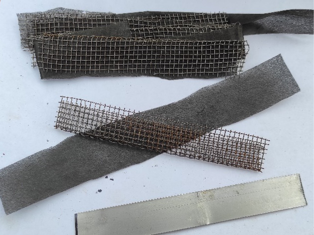 Fig. 3. Steel strip, mesh strip and carbon fiber veil