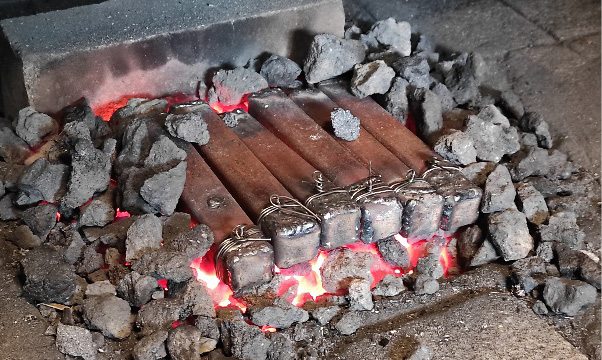 Рис. 5. Стальные многослойные пакеты, помещенные в кузнечный горн