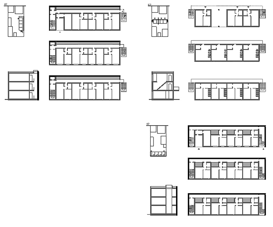 Fig. 4. Gallery house. Options for location in the courtyard structure