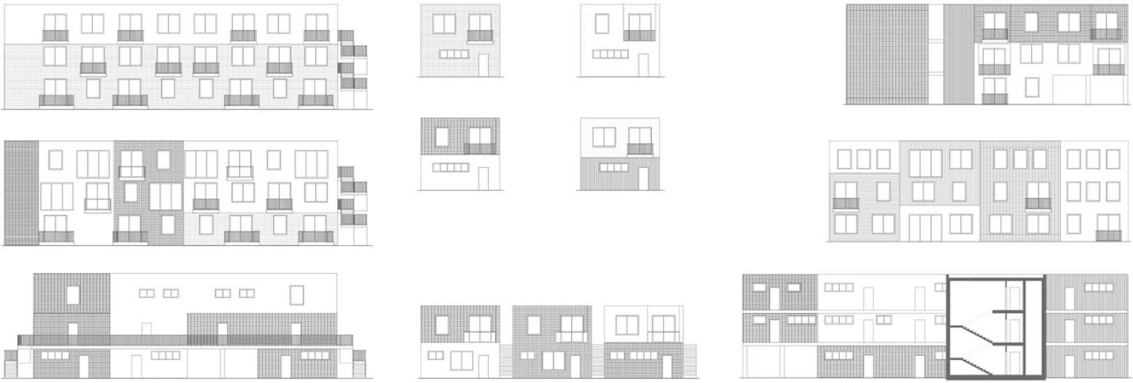 Fig. 8. Options for facade solutions of houses based on typical block modules