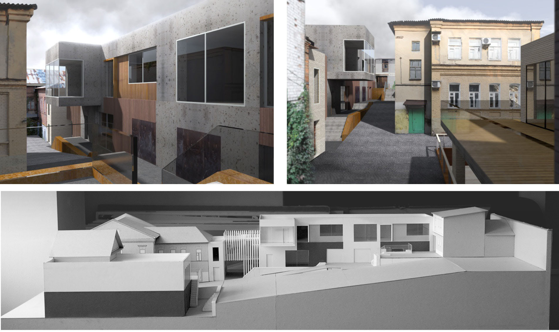 Fig. 9. Preliminary design of yard reconstruction based on typical block modules. Author ‒ student gr. 245 I. Nekrasov
