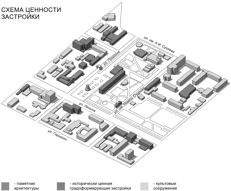 Рис. 8. Схема ценной застройки центральной части Элисты (авторская схема)