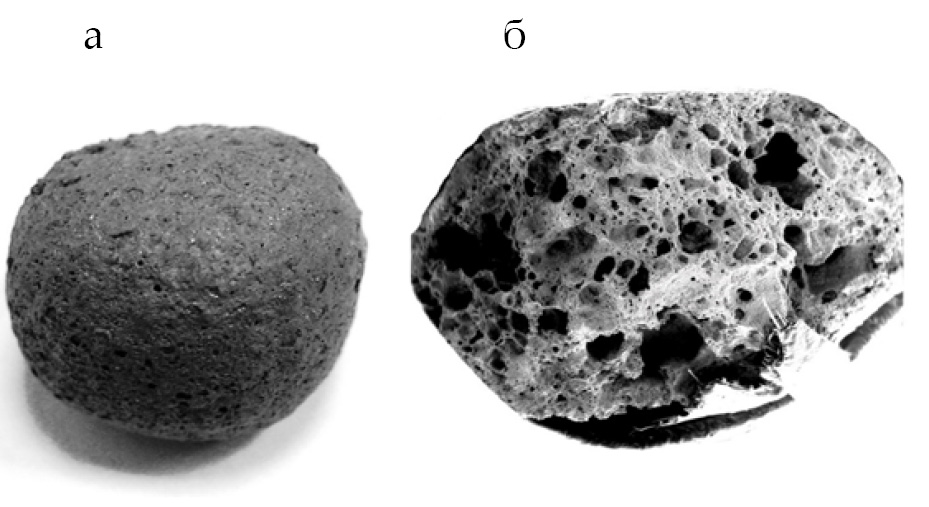 Рис. 4. Фото керамзита состава № 4: а – внешний вид; б ‒ разрез
