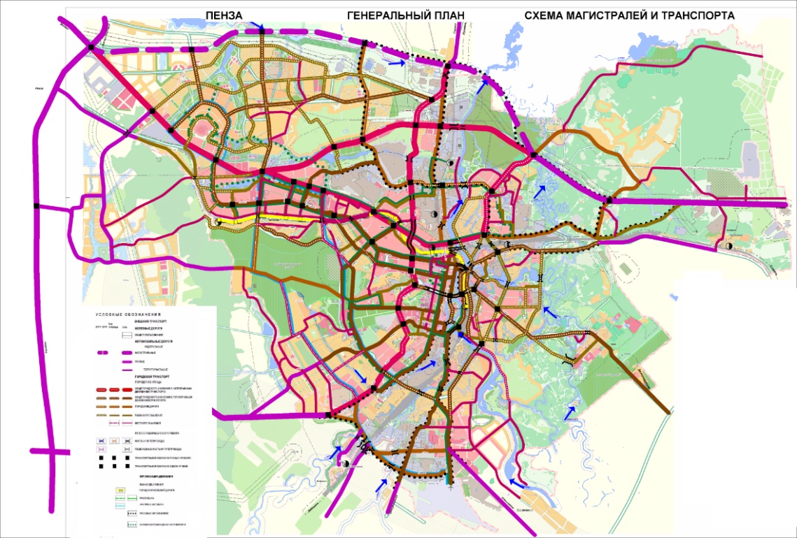 Риc. 1. Генеральный план магистралей и транспорта г. Пензы