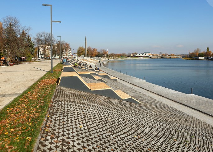 Для отдыха взрослых и детей оборудованы специальные места. Между дорожками верхней части набережной разбиты зоны для отдыхающих, площадки для отдыха со сценой, скейтбординга, настольного тенниса, стритбола. Для безопасности покрытие спортивных площадок будет прорезинено. Для маломобильных групп населения предусмотрены пандусы.