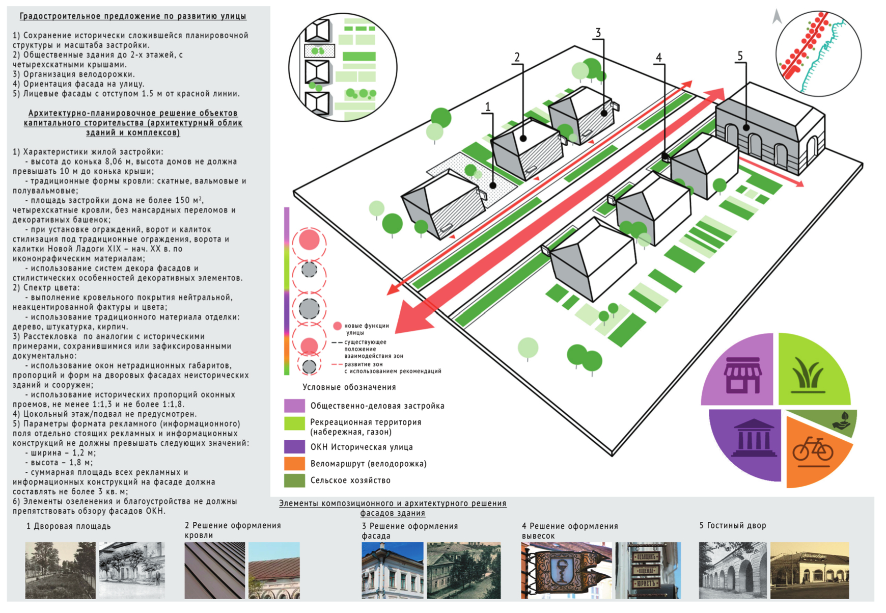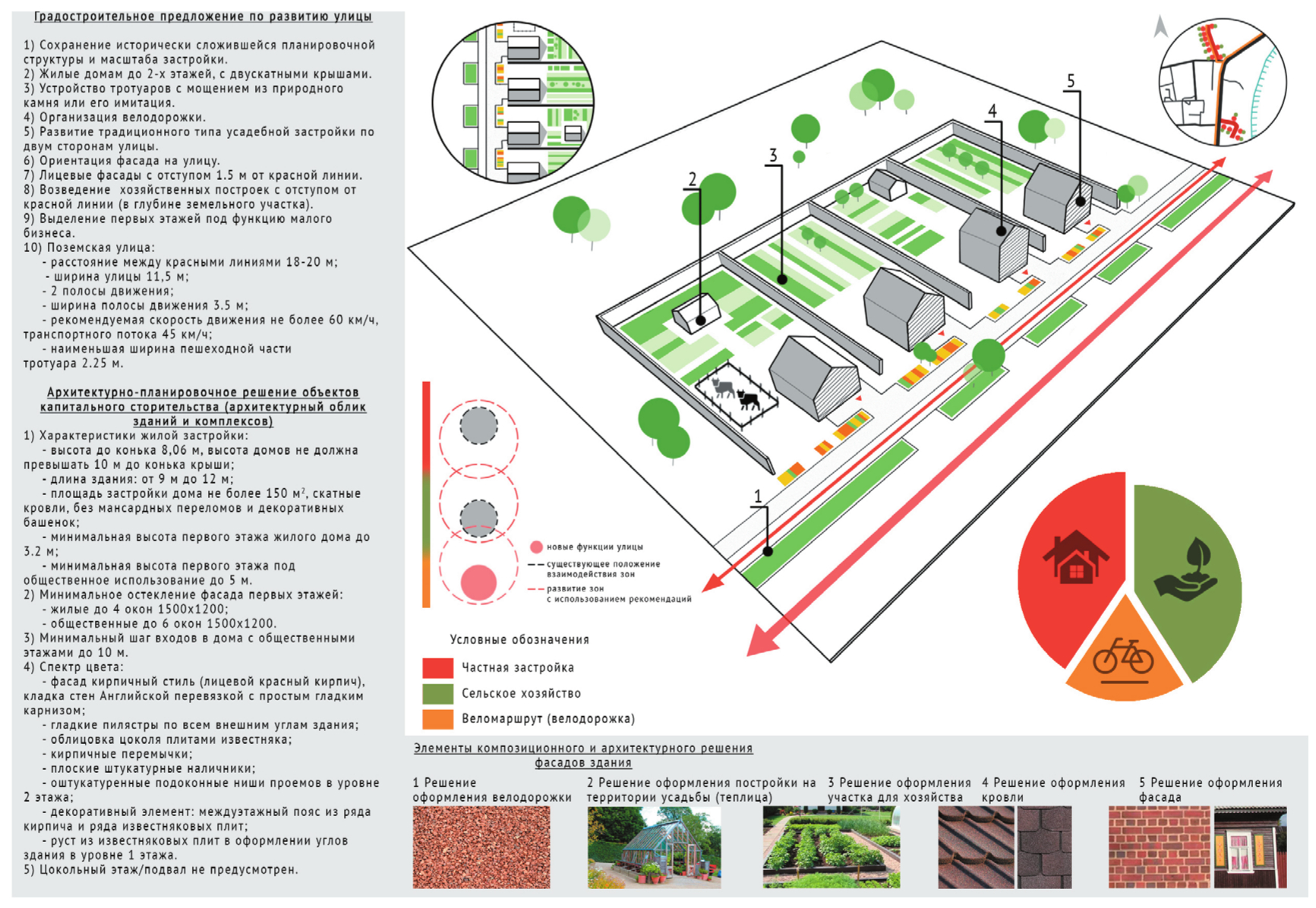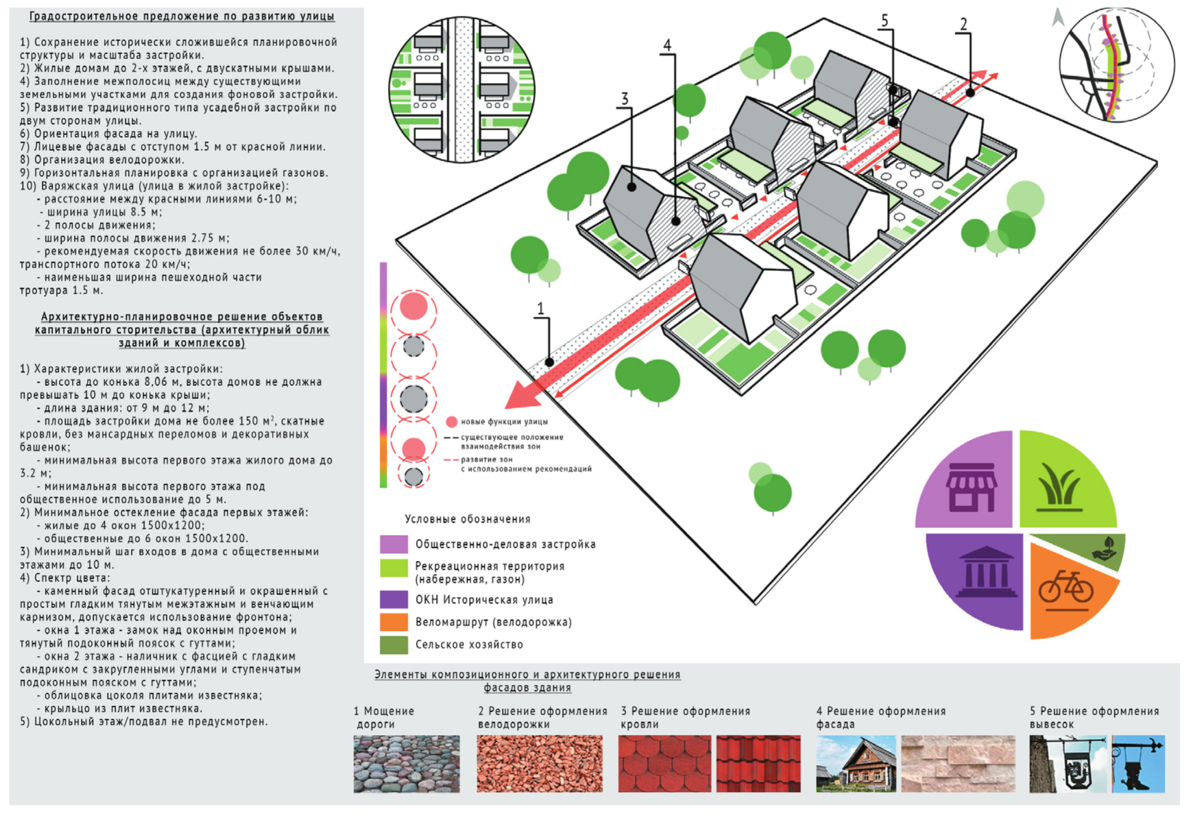 Рис. 5. Объемно-пространственное и архитектурно-планировочное решение исторической улицы Поземская «Деревенская улица»