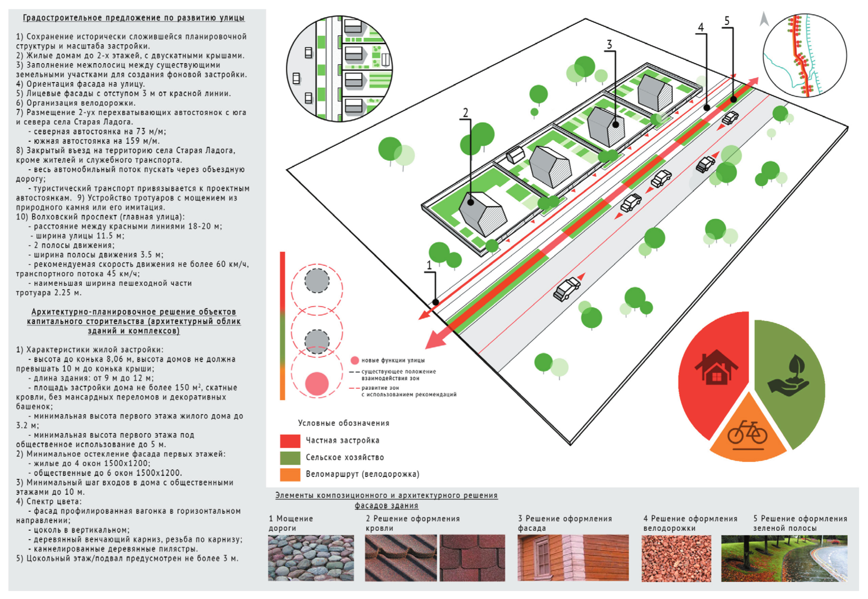При разработке архитектурно-пространственных моделей села Старая Ладога и города Новая Ладога были подготовлены и предложены объемно-планировочные параметры разрешенного строительства и реконструкции объектов капитального строительства для установления индивидуального дизайн-кода в исторической части населенного пункта. Ревитализация исторических улиц и каналов через визуальное предложение к градостроительным регламентам должна закрепить уровень качества историко-культурной среды поселений при реконструкции и дальнейшей застройке фасадной части улиц.