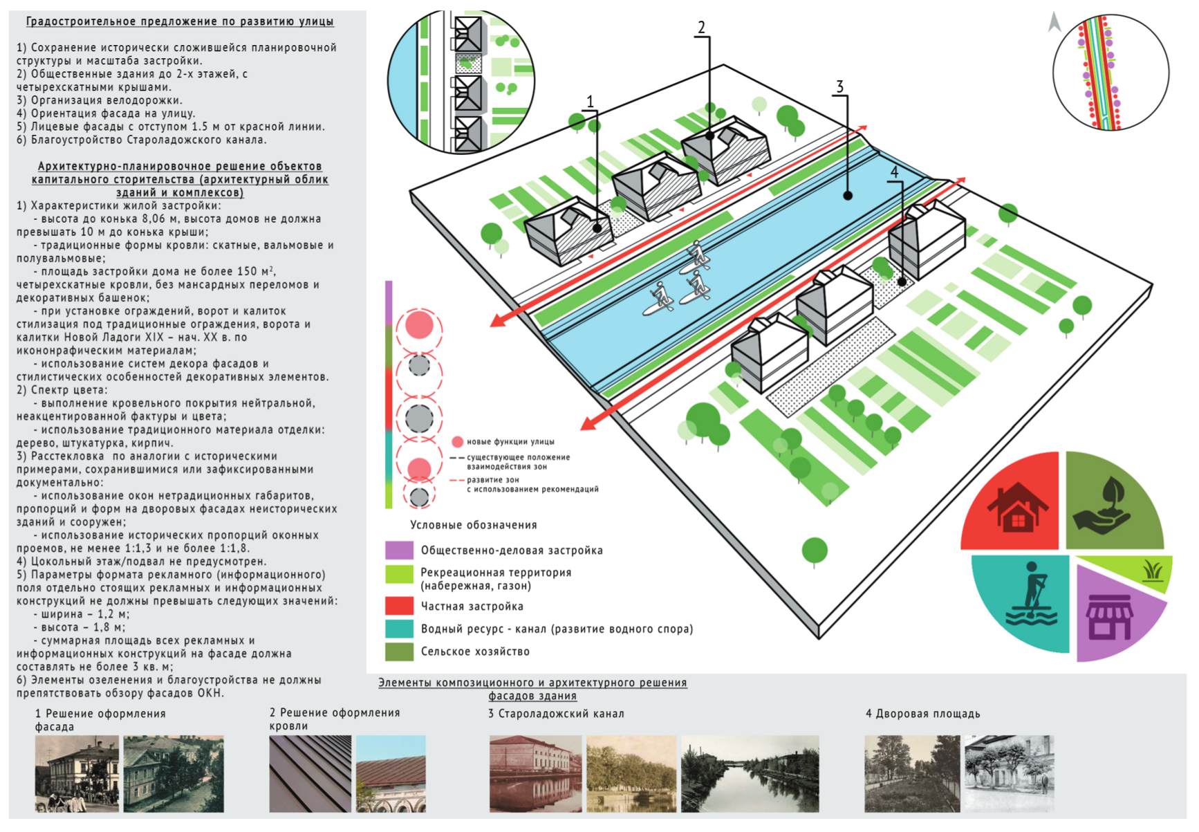 Рис. 7. Объемно-пространственное и архитектурно-планировочное решение исторической улицы Пролетарский канал «Общественная улица»
