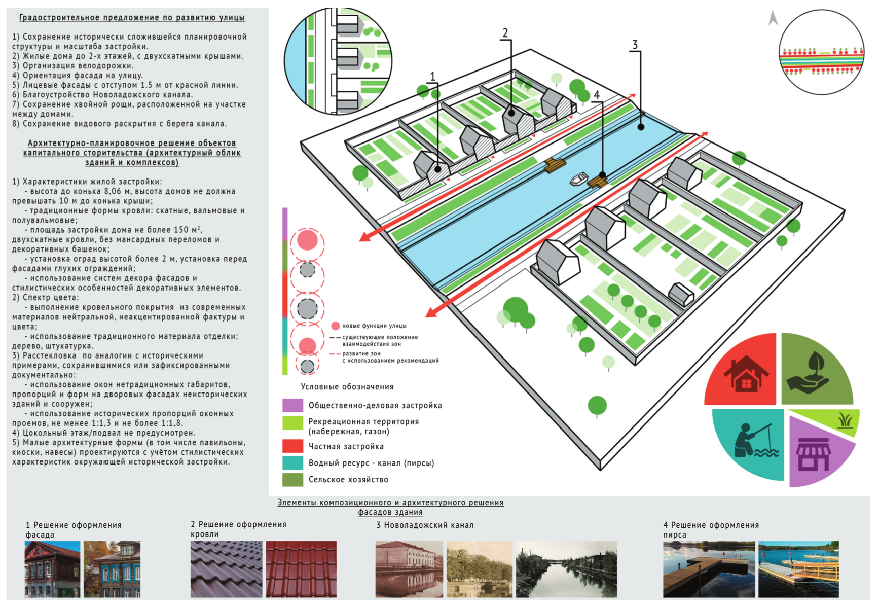 Рис. 8. Объемно-пространственное и архитектурно-планировочное решение исторической улицы Новоладожский канал «Жилая улица»