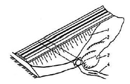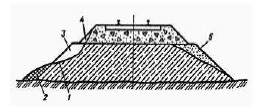 1– места подмыва; 2– насыпь; 3 – основание насыпи; 4– подмытый откос | Расползание насыпи | Попадание в тело насыпи льда, снега; переувлажнение поверхностными водами по местности тела насыпи, накопление влаги в балластных ложах | Неудовлетворительная организация отвода поверхностного стока и грунтовых вод | Организация отвода поверхностного стока и грунтовых вод | ||