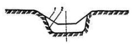 7 | 1– построечный поперечный профиль канавы; 2 – очертание размываемой канавы | Размывы откосов и заиливание канав, кюветов | Размывы открытых водоотводов (канав, кюветов и др.) | Разрушения откосов и дна продольных канав, кюветов, отводных русел от дренажей, в местах соединения (слияния) канав, выпусков воды из канав на поверхность земли с образованием промоин, русел | Чрезмерно большая скорость потока; неправильное расположение перепадов, быстротоков, выходов канав и их поворотов | Содержание водоотводных сооружений в удовлетворительном состоянии |