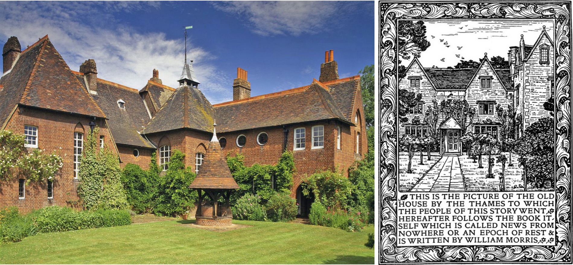 Риc. 1. Красный дом,1860, арх. Филип Уэбб и Уильям Моррис (фото Níall McLaughlin Architects) и иллюстрация из книги Уильяма Морриса «Вести ниоткуда», 1891