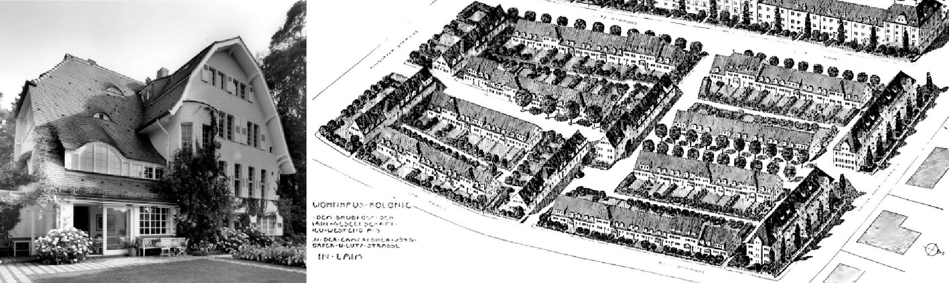 Риc. 5. Загородный дом Мутезиуса (Целендорф, Берлин), 1906-1907, арх. Герман Мутезиус (berlin.de) и проект Колонии небольших домов (Лайм, Мюнхен), 1912, арх. Теодор Фишер [9]