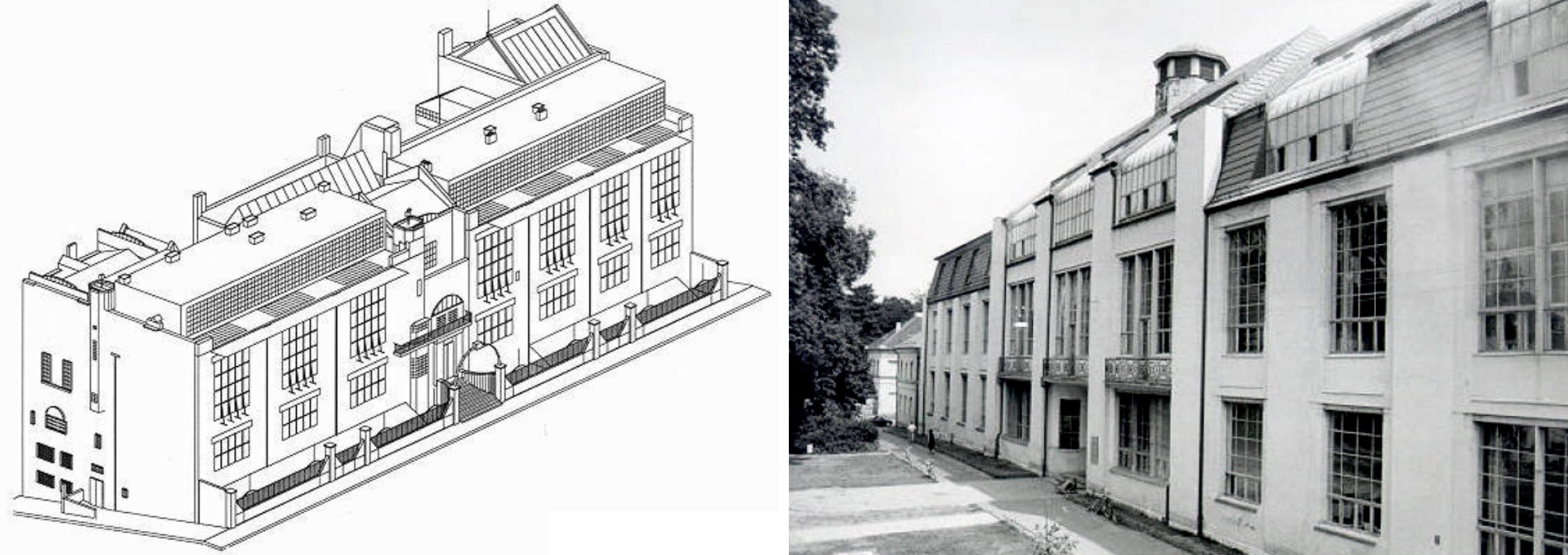 Риc. 11. Школа искусств в Глазго, 1909, арх. Чарльз Ренни Макинтош (аксонометрия) и Школа прикладных искусств Великого герцога Саксонского (Университет Баухаус) в Веймаре, 1911, арх. Анри ван де Вельде (фото: unesco.org)