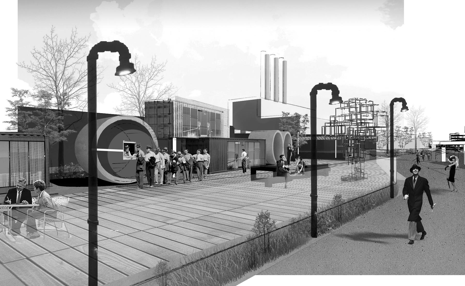 За основу концепции взята идея интерпретации заводских процессов в новом ключе. Известно, что город Куйбышев долгое время был городом-заводом, поэтому бессмысленно отрицать историю. Лучше ее использовать! И сегодня место проектирования не лишено заводской романтики, что подтолкнуло нас к созданию альтернативного завода – завода, ничего не производящего буквально, но дающего этому городу очень многое – альтернативную среду времяпрепровождения, насыщенную эмоциями, информацией и событиями (риc. 5). В рамках концепции территория была структурирована, наподобие заводских цехов, производящих штампованную продукцию; но мы альтернативно производим: знания (Цех производства знаний), активный отдых (Цех спорта и отдыха), творчество (Цех «искусствопроизводства»), здоровый аппетит (Цех общественного питания) и полный релакс в конце трудового дня для «сдавших смену» (риc. 5).