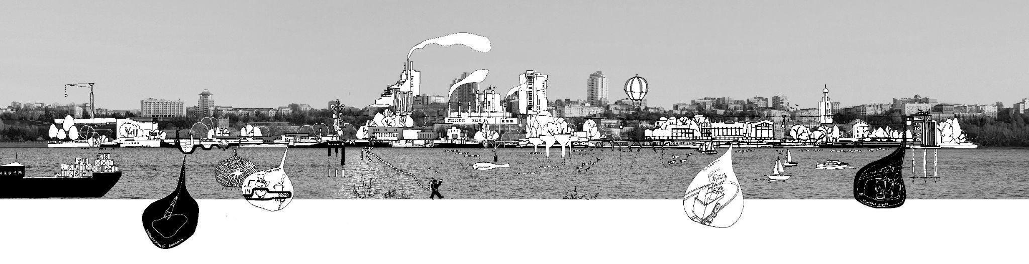 Однако главным арт-объектом в среде новой очереди набережной остается Волга. Природную форму волжских пейзажей повторяют пешеходные и велосипедные дорожки, скамейки и навесы. Набережная реки разделена на два уровня с разным пространственным качеством. На первом уровне сохраняется природная среда, высаживаются дополнительные зеленые насаждения, располагаются бассейны с пресной водой и зона пляжного отдыха. Второй уровень отдан больше под прогулочную зону и размещение стационарных и легко демонтируемых объектов – мастерских, фудкорта, инсталляций, смотровых площадок, летнего кинотеатра... Стоя на досках причала, обернувшись спиной к городу, и глядя на воду, рассматривая вдалеке полоску противоположного берега, вы можете почувствовать преемственность культуры города и природы, ощутить плотность времени и смену времен года [10].