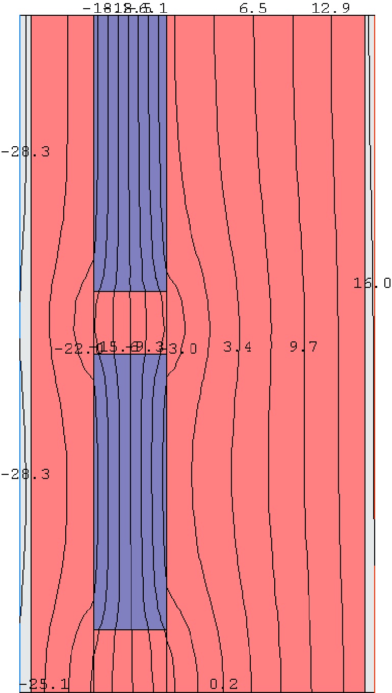 Риc. 3. Температурное поле в горизонтальном сечении наружной стены