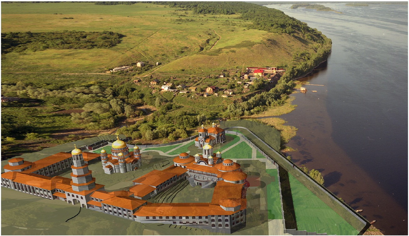 Общий вид с высоты полета архиерейского подворья в честь Казанской иконы Божьей Матери в с. Винновка Ставропольского района Самарской области представлен на риc. 4. На риc. 5, 6 приведены планы первого и второго этажей гостиницы соответственно.